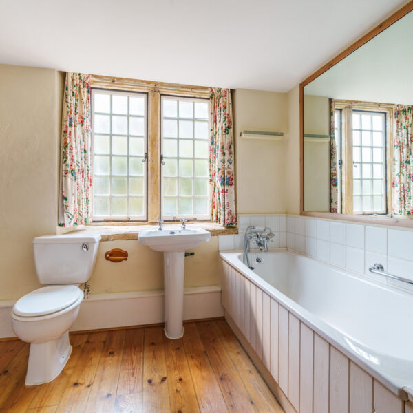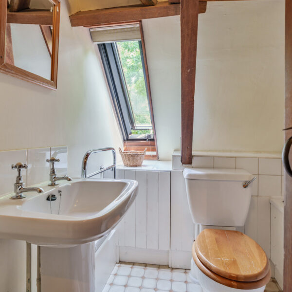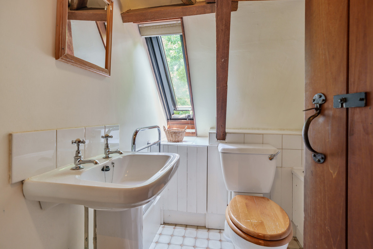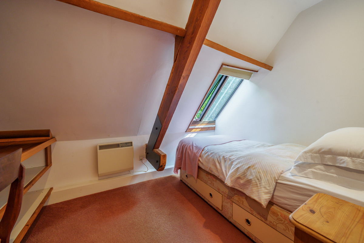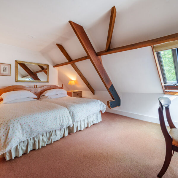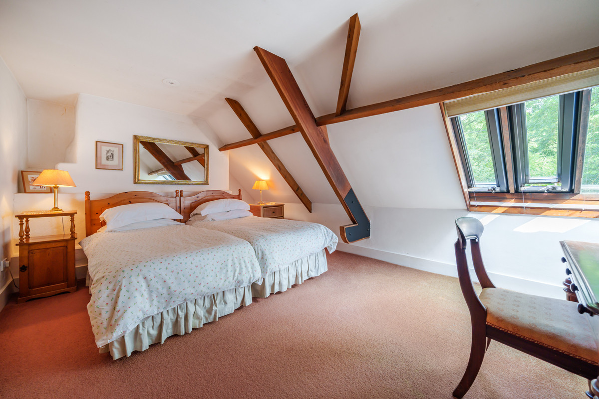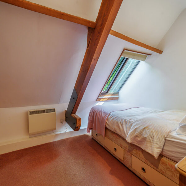 Upstairs are two further bedrooms — one a single, ideal as a study or nursery, and the other a spacious double with twin beds and fitted storage — along with a second bathroom.