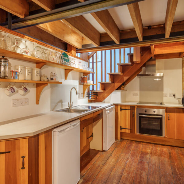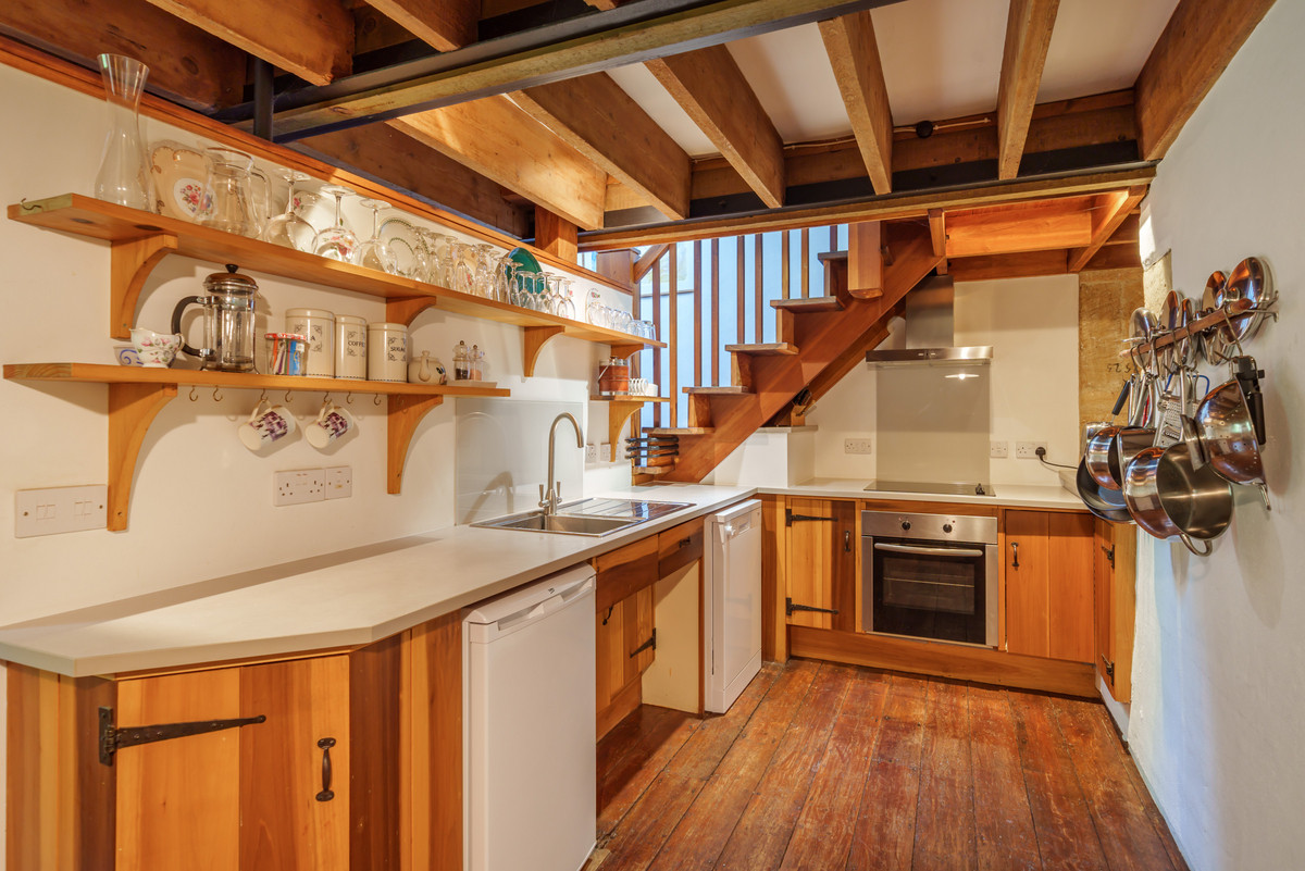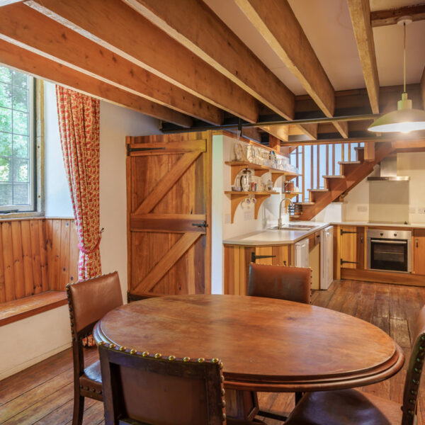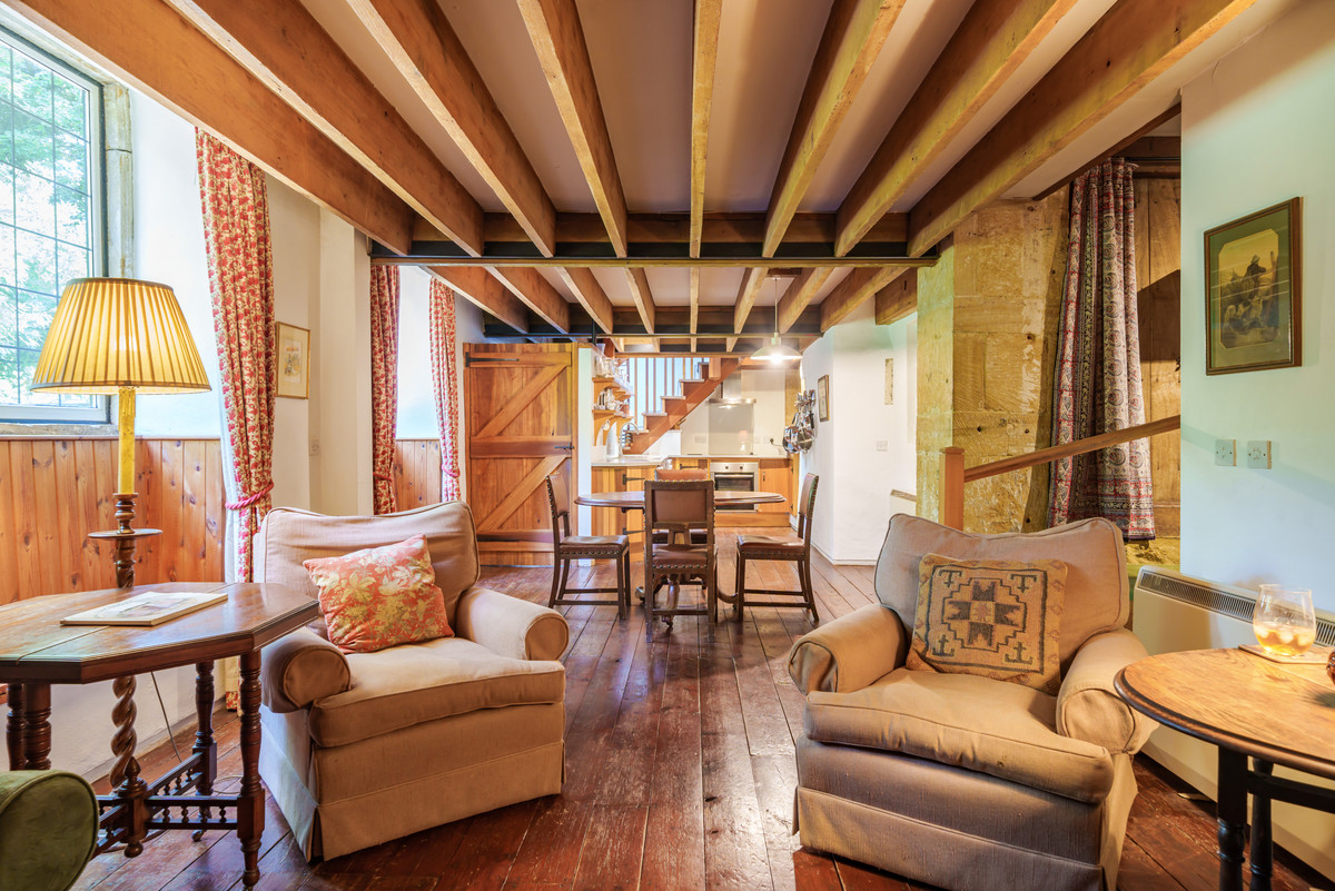 Chetnole Mill is steeped in history, with original features such as millstones, watercourses, and the old oven sympathetically incorporated into the conversion. The ground floor has also been thoughtfully designed with accessibility in mind, including higher plug sockets and a handrail on the shallow steps to the bedroom.