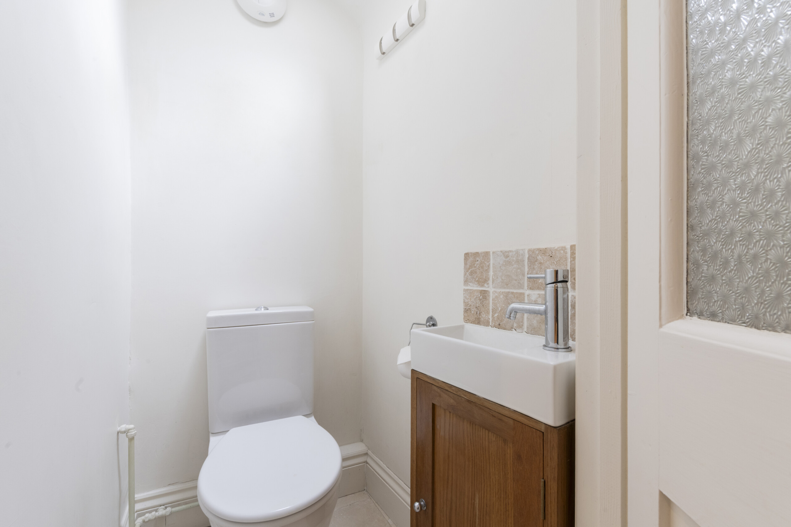 Additional built-in storage is conveniently located on the landing.The family bathroom is spacious and well-designed, featuring a double-ended bathtub, a separate shower enclosure, and smart travertine tiles on both the floor and walls.The top floor loft conversion offers a quaint and peaceful third bedroom. A chimney breast detail adds character, while built-in storage in the eaves maximizes space. A window provides enchanting rooftop views across the neighboring properties.
