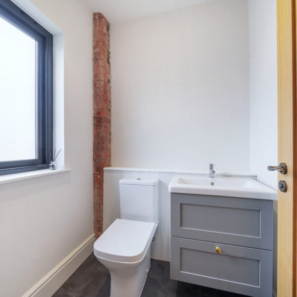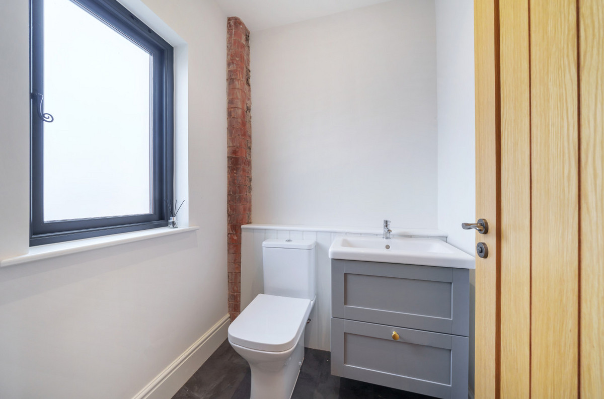 The first door on the left is the cloakroom with an original brick column in the corner, W.C., and wash brain with storage below.