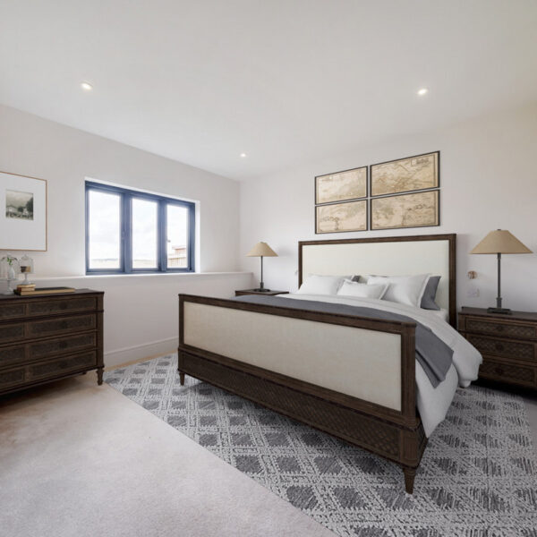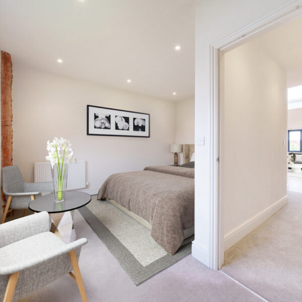 The last is an exceptionally generous double bedroom with a double-glazed window overlooking the garden, a walk-through dressing area, and an ensuite shower room.