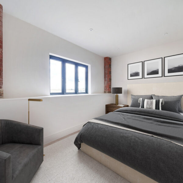 The first bedroom is a good-sized, double bedroom with a double-glazed window overlooking the courtyard and with exposed original brick and slate columns.